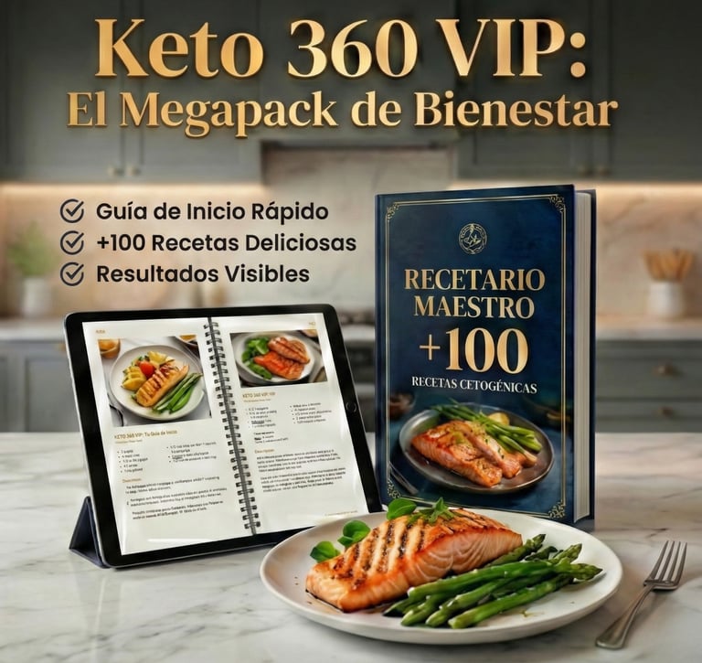 Transforma tu cuerpo y tu energía con Keto 360 VIP. Megapack keto completo con guías y menús para bajar de peso de forma saludable y sostenible.